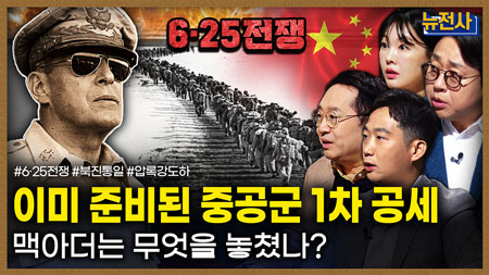 1950년 6월 25일 전쟁 발발 이후, 한반도의 마지노선인 낙동강 방어선을 형성해 전쟁의 흐름을 버텨냈고 9월 15일 대망의 인천상륙작전을 시작으로 반전에 성공했습니다. 이 무렵, 미국 정부와 극동 사령부는 북진 vs. 38선 대치를 놓고 갈등을 빚었지만, 맥아더 장군의 강행 지시 하에 유엔군은 북진을 시작하게 됩니다. 국군 1사단과 6사단이 선봉이 되어 성공적인 북진을 하던 도중, 곳곳에서 이상한 징후들이 포착되는데 그것은 '중공군 포로'였습니다. 이에 야전 사령관들은 상황을 보고 했지만, 북진 지시는 멈추지 않았고 북진을 거듭할 수록 발견되는 중공군의 숫자는 점점 많아졌는데요. 이 상황을 모르고 북진하는 유엔군 앞에 중공군은 어떻게 이빨을 드러내게 될가요?... 〈뉴스멘터리 전쟁과 사람〉은 6.25 전쟁 중공군 제1차 공세를 통해 통일 직전에 멈춘 북진에 대해 짚어봅니다